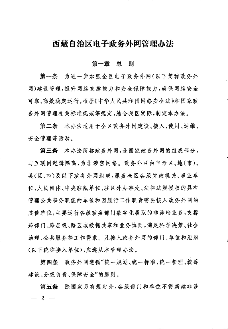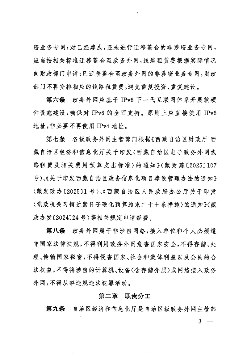 西藏自治区电子政务外网管理办法